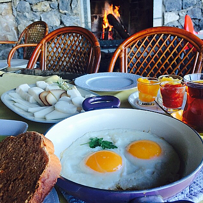 Kış ve ilkbaharda bize özel bir lezzet olan ebegümecili omletimiz de büyük ilgi çekmektedir. Yaz mevsiminde ise ektiğimiz salatalıkları ve yeşil biberleri topladığımız zamanlarda kahvaltıda bostandan taze koparılmış organik sebzeler yine kahvaltımızda sizlerle!