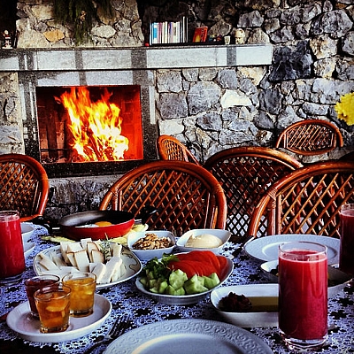 Şömine başında kahvaltı keyfi ayrıdır... Nar suyu da kışın vazgeçilmezi!