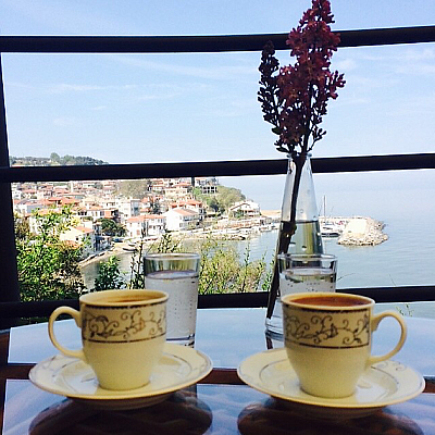 Dalga sesleri eşliğinde keyif kahvesi içmek isteyenler için Türk Kahvesi taze kahveden yapılmaktadır. Tatlı çeşitlerimizin yanına her zaman yeni çekilmiş tazeliğindeki kapsül kahveyle hazırladığımız kahve çeşitlerimizden içmeniz önerilir! Mayıs - Ekim ayları arasında özel yapım soğuk bitki çayımızı da mutlaka denemelisiniz.
